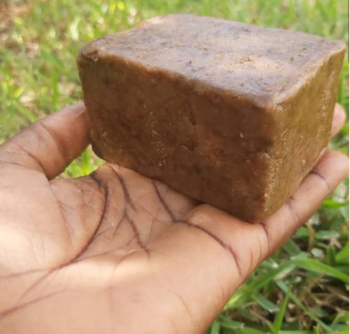 Pure unrefined shea butter, cocoa pod ash, plantain skin ash, palm kernel oil, coconut oil, palm oil, natural vitamin E, and water.